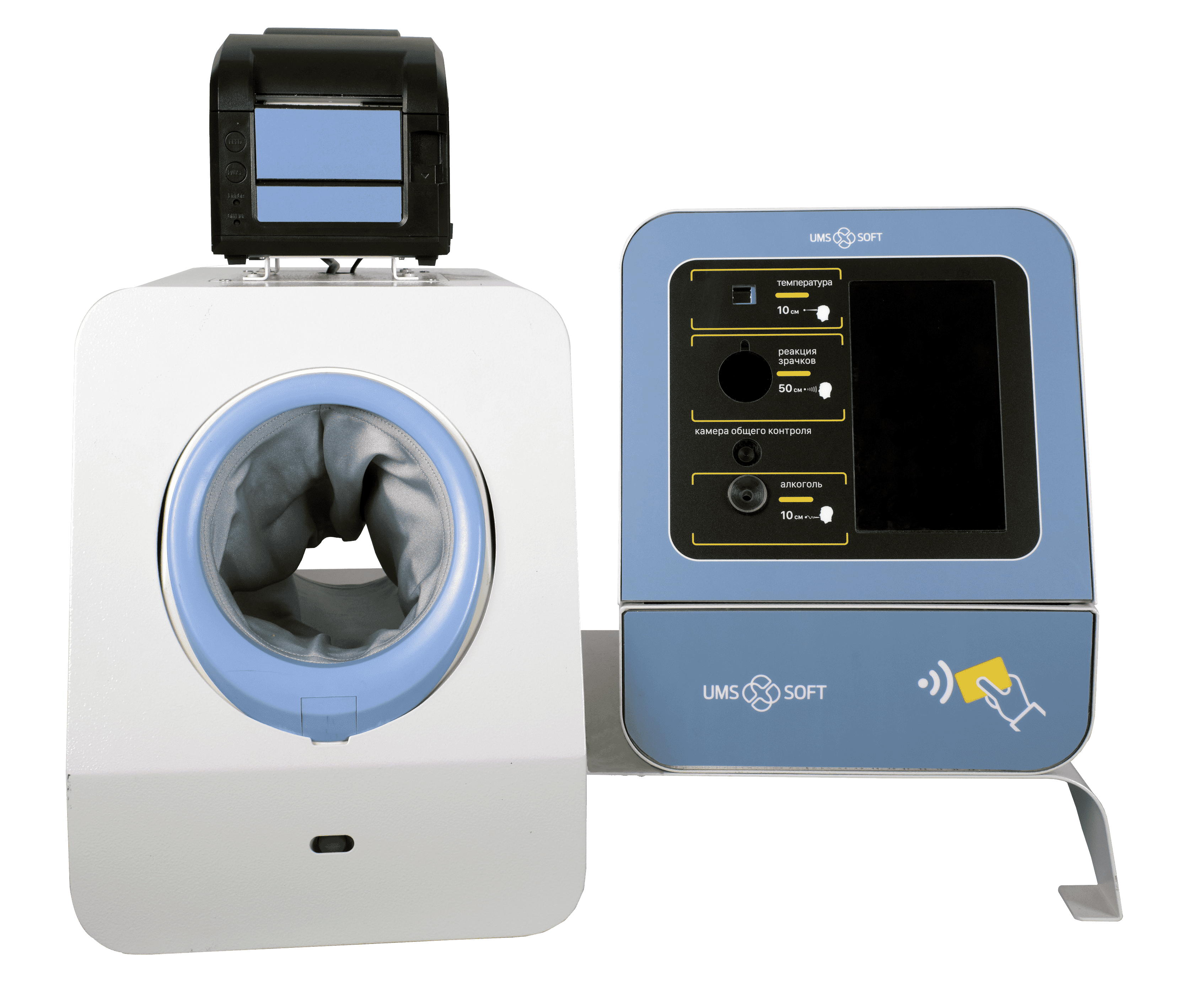 The system automatically acquires data on blood pressure, pulse, temperature, and alcohol on breath and generates logs and reports